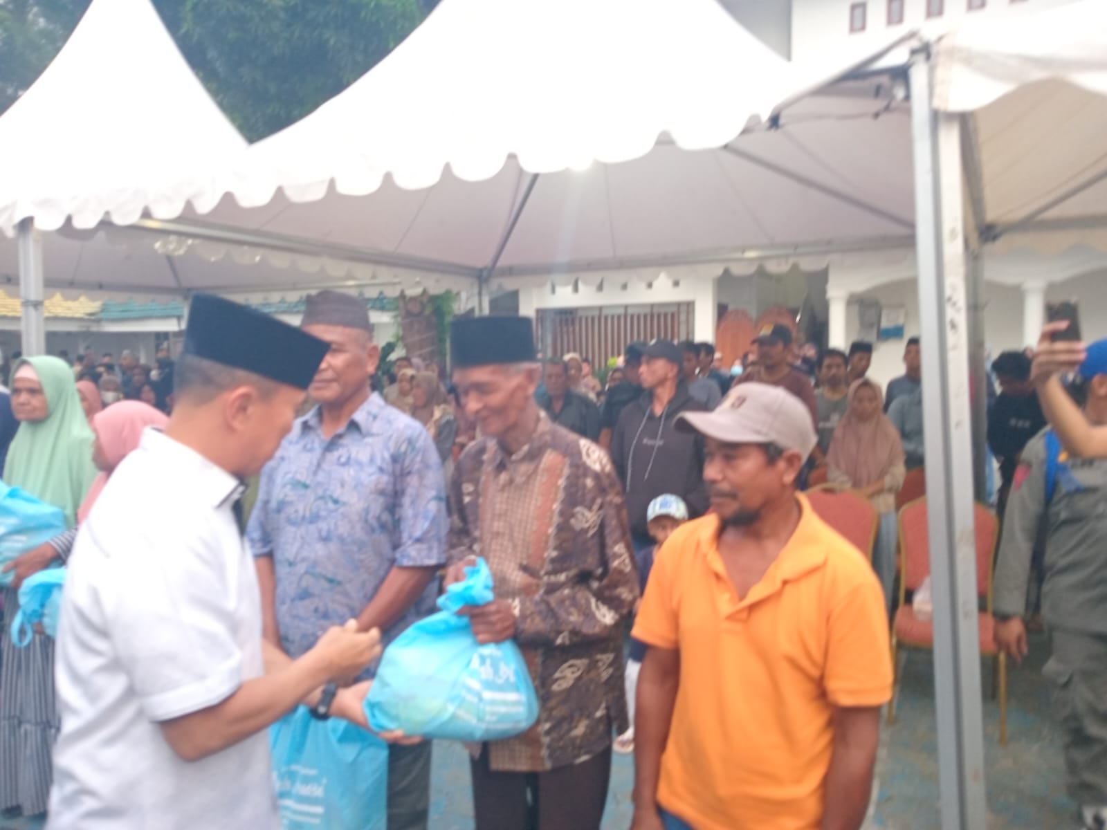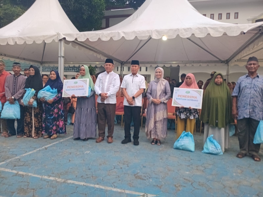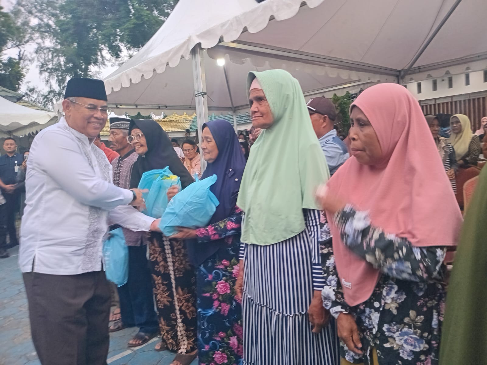 Sebelum acara buka puasa di mulai, Gubernur Sultra, Andi Sumangerukka didampingi Wali Kota Baubau, H. Yusran Fahim membagikan bantuan kepada masyarakat kurang mampu.(Hasrin/Red)