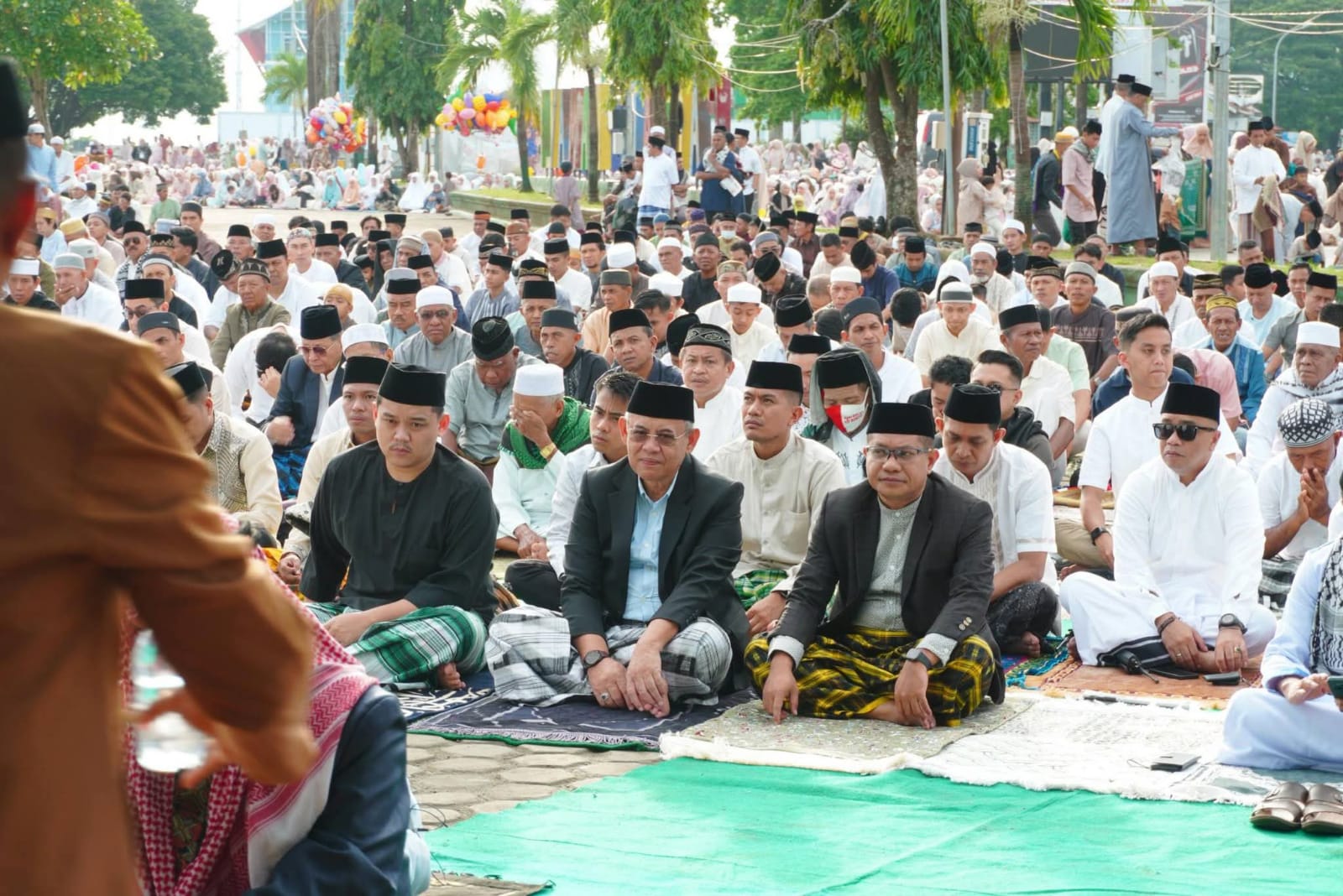 Wali Kota Baubau, H.Yusran Fahim bersama Ketua DPRD Baubau, Ardin Jufri saat melaksanakan shalat Idhul Fitri di pelataran Pantai Kamali