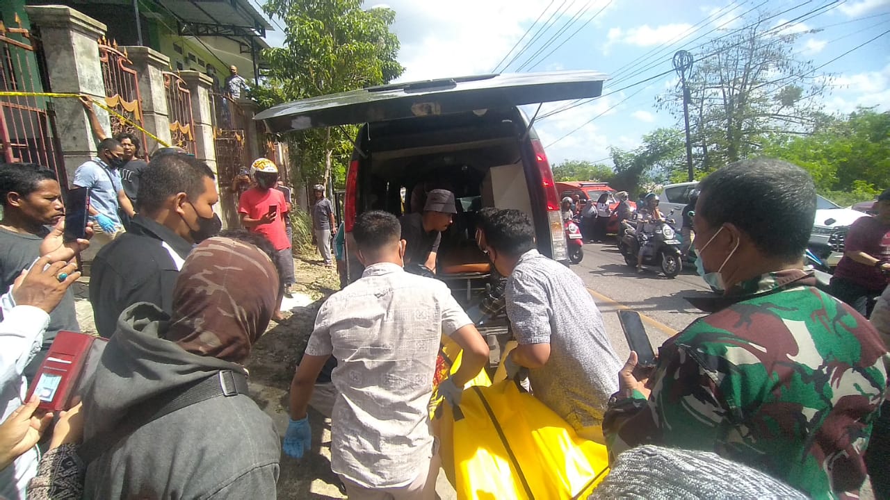 Korban saat dievakuasi di mobil ambulance untuk di visum di RSUD Palagimata