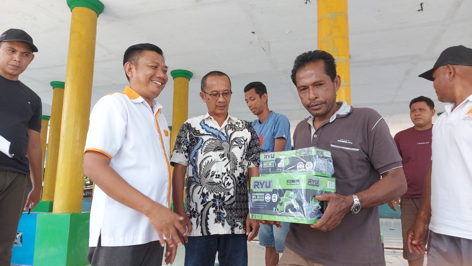 Budi dan La Wajo, tukang penerima bantuan menyampaikan terima kasih atas bantuan yang diberikan. Apalagi alat pertukangan yang diterima akan memudahkan aktivitas mereka.