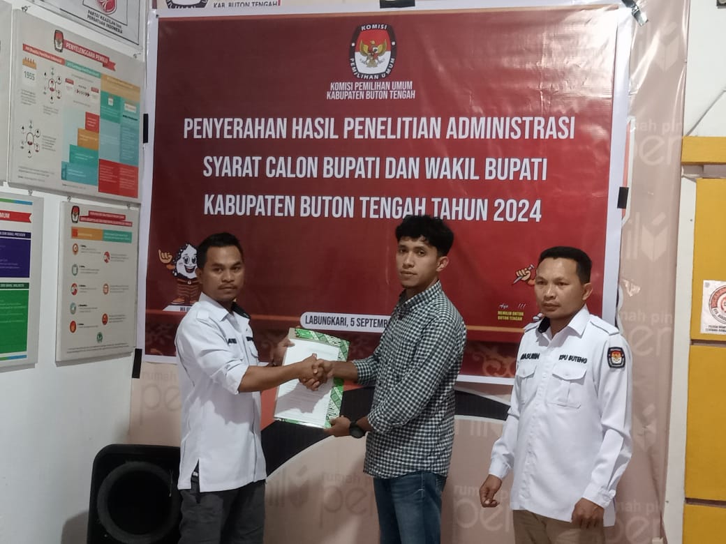 Hal itu disampaikan Ketua Divisi Penyelenggaraan Pemilu KPU Buteng, Darwin, saat menyerahkan hasil penelitian administrasi syarat calon bupati dan wakil bupati Buteng kepada Liaison Officer (LO) kedua Bapaslon di Kantor KPU Buteng, Kamis (5/9/2024) sore.
