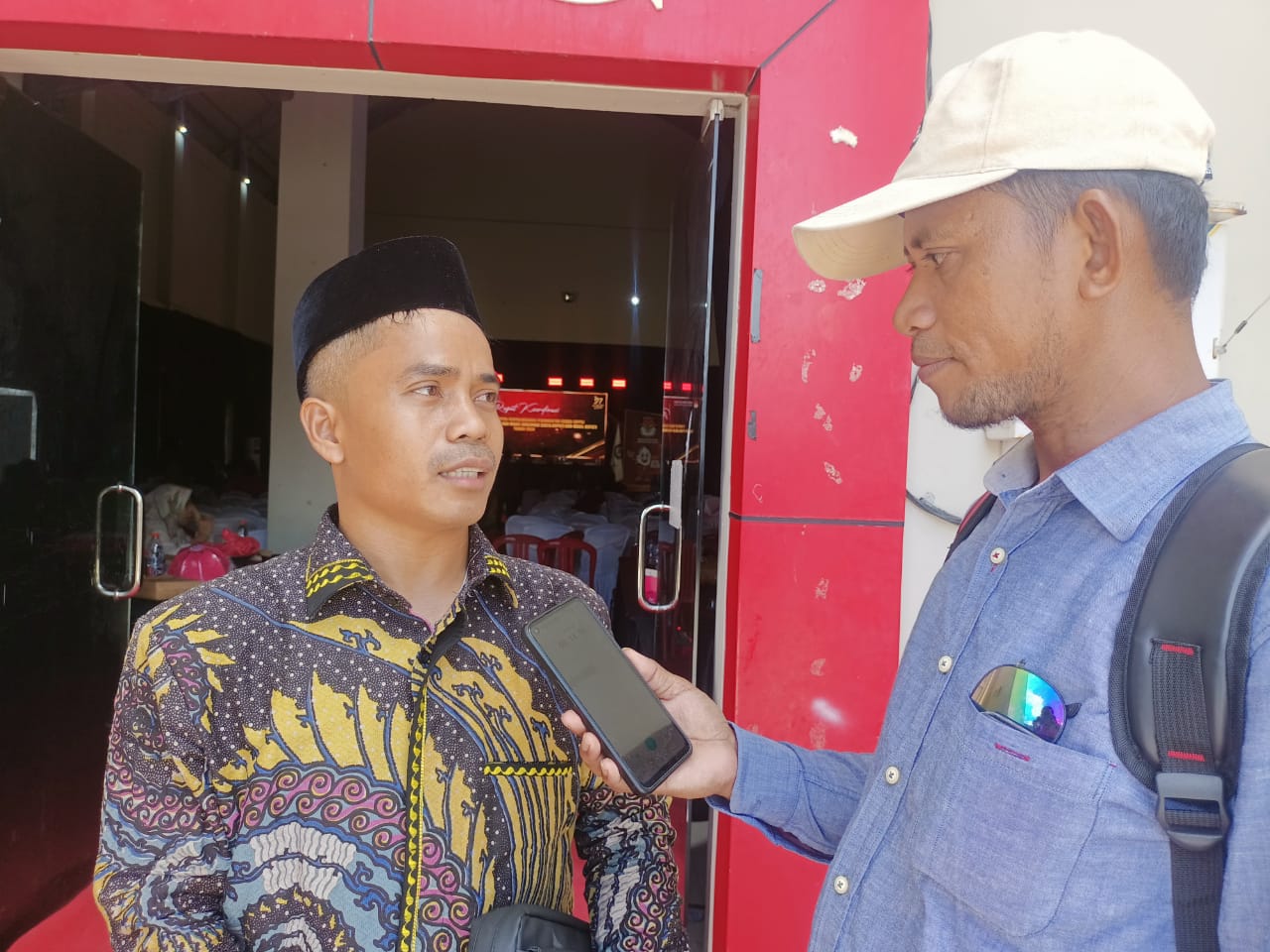 Ketua Divisi Parmas dan SDM KPU Buteng, Karlianus Poasa saat diwawancara wartawan