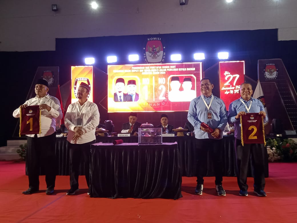 "Nomor urut 1 pasangan Azhari - Muh Adam Basan (AZAN) dan nomor urut 2 pasangan La Andi - Abidin .," sebut Ketua KPU Buteng La Ode Abdul Jinani.