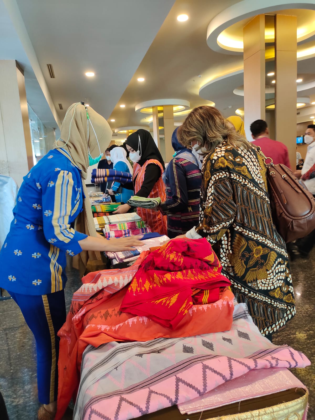 Pakaian dengan motif ciri khas daerah Sultra dipromosikan kepada pengunjung dalam salah satu pameran yang di gelar Dinas Perindag Sultra