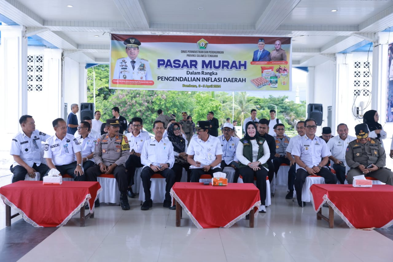 BOMBANA,GAGASSULTRA.COM-Pemerintah Provinsi Sulawesi Tenggara (Pemrov Sultra) dan Kabupaten Bombana berkolaborasi dalam upaya menanggulangi tingginya angka inflasi yang berdampak pada beban ekonomi masyarakat. Untuk itu, Pemrov Sultra melalui DInas Perindustrian dan Perdagangan (Perindag) Sultra mengadakan pasar murah di Kabupaten Bombana.