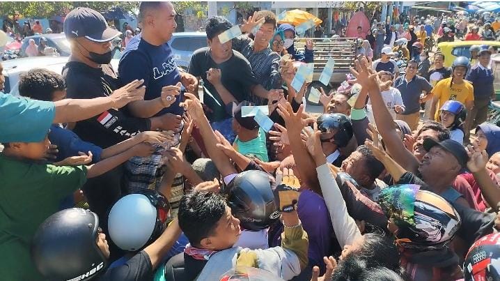 Ketua Pimpinan Daerah Partai Kebangkitan Nusantara (PKN) Sulawesi Tenggara (Sultra) kembali berbagi di kampung halamannya, Kota Baubau. Bukan hanya pedagang, namun hampir semua pengunjung pasar tidak luput kecipratan rezeki Rp 50 ribu perorang.