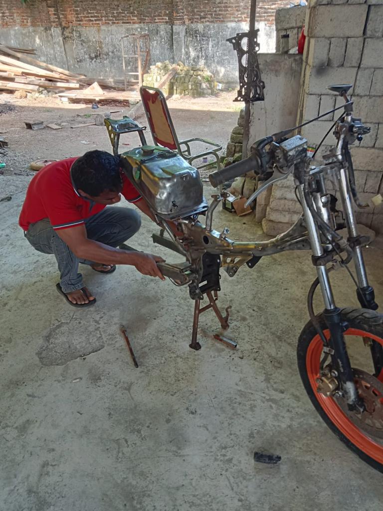 Salah satu warga binaan lapas kelas IIA Baubau saat merakit dan memperbaiki salah satu sepeda motor