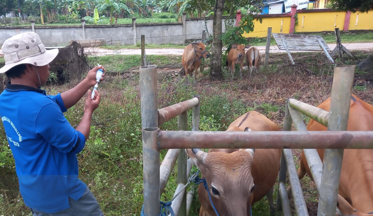 Petugas peternakan dari Distanak Sultra saat melakukan vaksinasi PKM di salah satu  peternak di Sultra