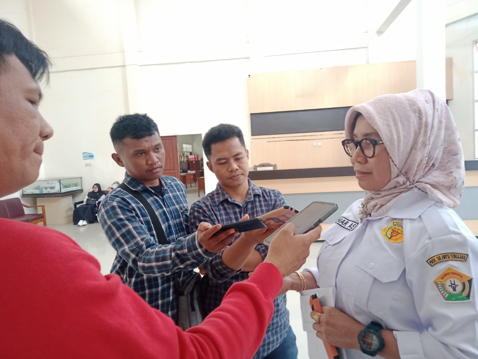 Kabid Binwas dan K3 Dinas Transnaker Sultra, Hj Asnia Nidi saat diwawancara wartawan